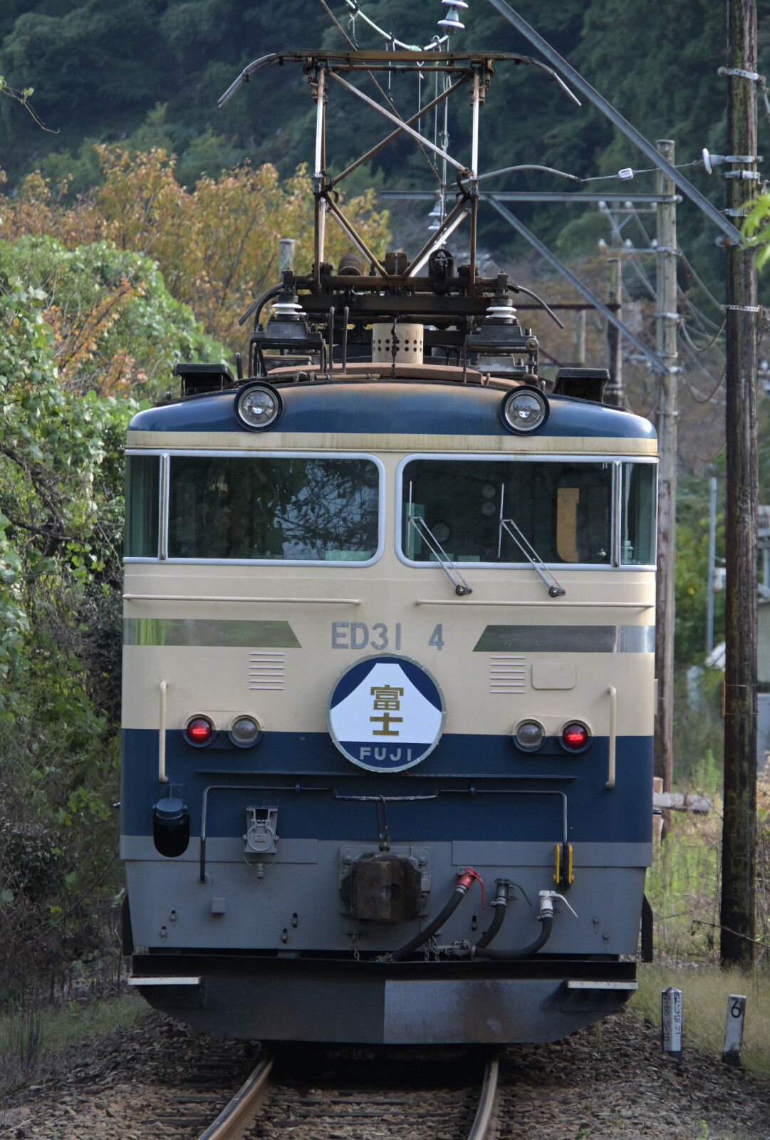 大井川鐵道 代走EL急行4号 2025/11/02 2025年11月09日 00:30 代走EL急行3号を撮影後はそんなに時間がかからず戻ってきますので、その場にとどまり4号を撮影しました。家山川の鉄橋を渡るE32。最後尾のED31-4を撮影しました。 撮影後は家山駅からのバスだと時間がかなりあとなので、その後の普通電車に乗車して金谷経由で宿泊地の静岡駅に向かいました。 「鉄道写真」カテゴリの最新記事 タグ :#大井川鐵道#代走EL急行 < 前の記事次の記事 > コメント コメントフォーム 名前 コメント 記事の評価 リセット リセット 顔 星 情報を記憶 コメントを投稿する